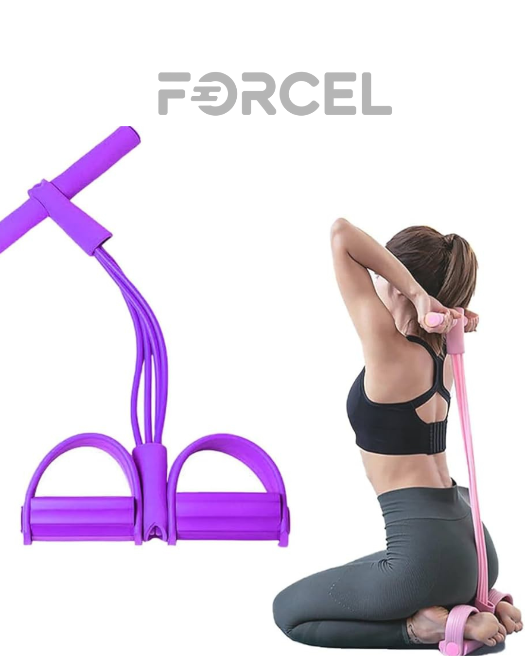 Este producto es un dispositivo de entrenamiento compuesto por bandas elásticas (ligas) y una base con pedales o estribos para los pies, diseñado para realizar ejercicios de tonificación muscular, estiramiento o rehabilitación, aprovechando la resistencia generada por la tensión elástica.